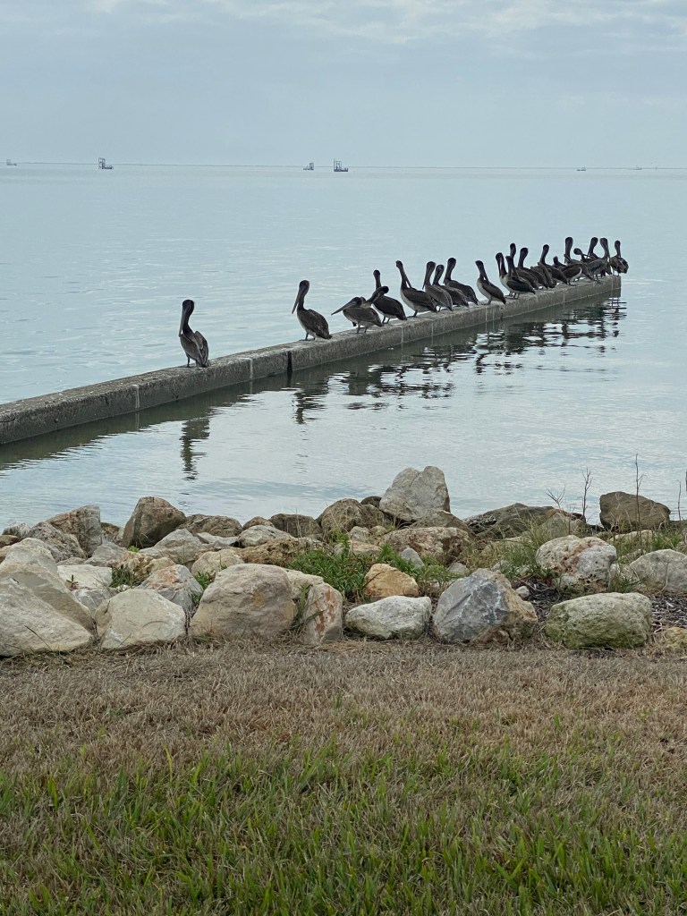 These pelicans gather almost every morning at the same spot, regardless of weather, regardless of temperature, regardless of what’s going on in the news. How do they communicate with each other? How do they know exactly when and where to gather? Do they talk to each other? Are they friends? Are they family? It doesn’t seem like they know. Nor does it seem like they care. The only one who cares, I guess, is me. And there’s not a single thing I can ever do that will ever give me those answers, so I let them be.